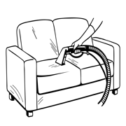 Het bankstel wordt eerst grondig gestofzuigd om los vuil te verwijderen.